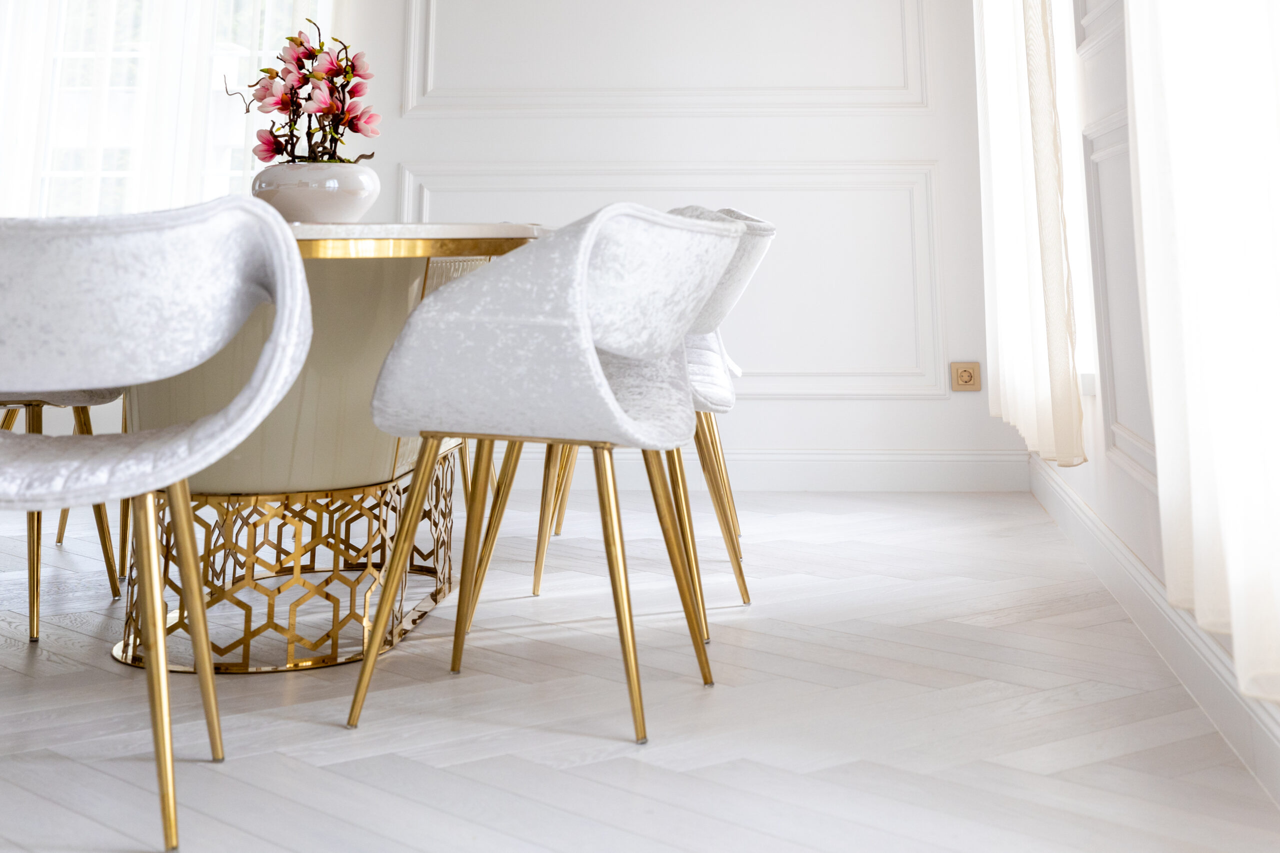 A modern konyha és a hozzáillő étkezőbútorok tökéletesen kiegészítik a kapcsolók kifinomult stílusát, megteremtve a modern életstílus élményét.